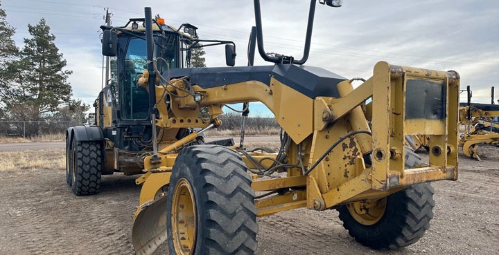 MULTI SHANK RIPPER, FRT HTCH, 14' BLD, CAB, AC, HEAT, LOW CAB, AIR SEAT, CLOTH SEAT, PS TRANS, DD TRANS, 17.5X25, RADIALS, 3 PIECE RIMS, FRT HYD, BTM GUARDS, RADIO.